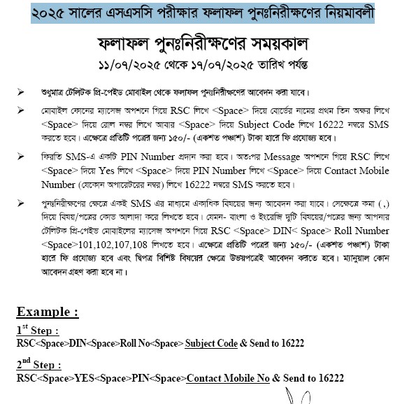 ২০২৫ সালের এসএসসি পরীক্ষার ফলাফল পুন:নিরীক্ষণের…